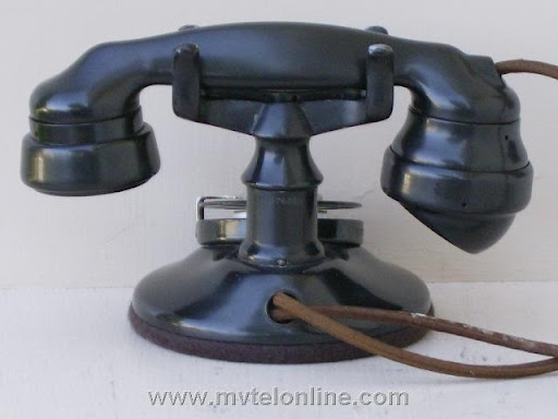 Western Electric A1, automatic cradle-phone. This antique telephone is the first handset desk telephone made by Western Electric. This phone is equipped with a 2HB dial and a seemless Western Electric E handset. Note the nickel plated phone number card holder.
