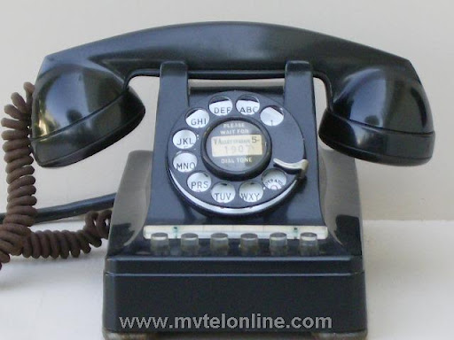 Western Electric 460 desk phone. This 1940s or 1950s era telephone a multi-line version of the 302 telephone. It is equipped with nice brown colored cloth covered cords. The phone is equipped with 6 line keys.