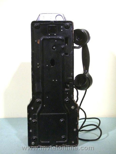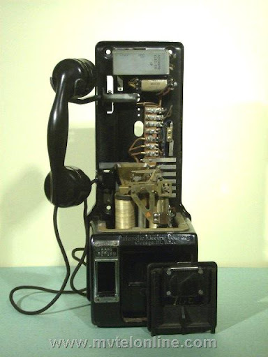 Automatic Electric 66E. This antique telephone is equipped with a Bakelite AE 34 handset and Bakelite dial shroud with a porcelain "daisy" face. The 66E is a 5 cent post-pay payphone, looks like it was converted or upgraded to work with a dime. Conversions are very common with payphones. When a call changed from 5 cents to 10 cents the change was actually made internal to the phone.