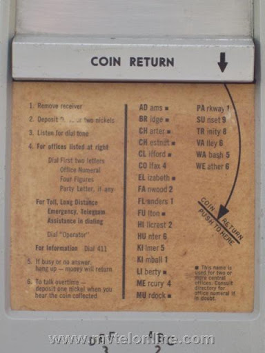 Nick named "EDGE ON" and field tested in Woodbridge, NJ in 1958. A limited number of experimental coin telephones with important changes in appearance and internal operation have been placed on trial for a few months at various locations. The purpose of this trial, being conducted with the cooperation of the New Jersey Bell Telephone Company, is to test the operation of the new equipment.