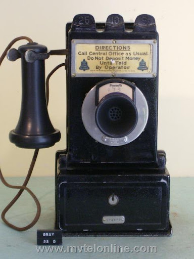 Gray #23D, a complete 2 piece paystation. Like an antique telephone desk stand it connects to a subset (ringer box). The operation is completely under the control of the operator. View my article Gray 23D Coin Collector