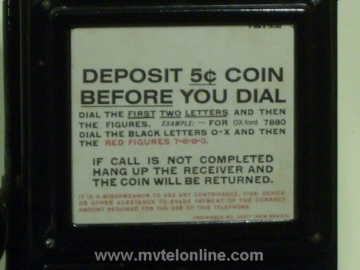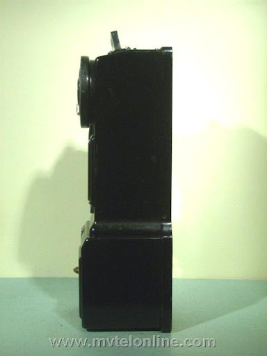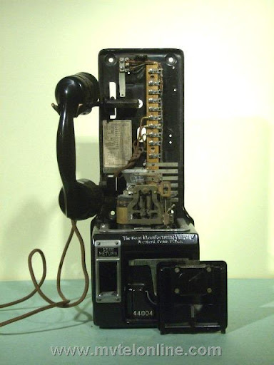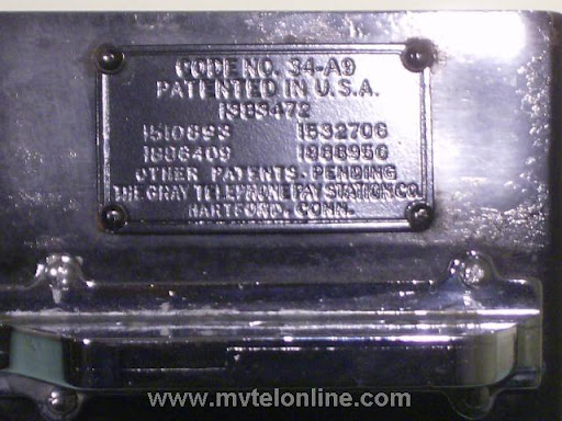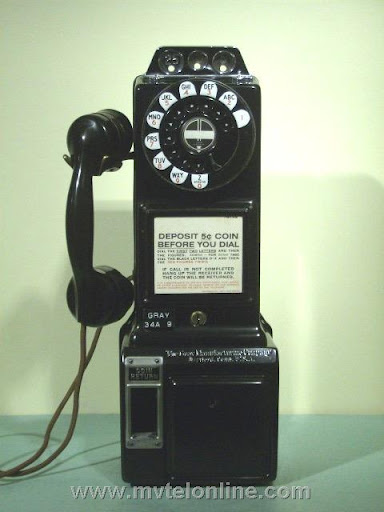 Gray #34-A-9, 5 cent, automatic, prepay paystation or payphone with an AE type 34 handset, AE dial with pot metal shroud. Take a look at the nice Gray embossed hopper. View my article Gray 34-A-9 Paystation