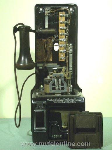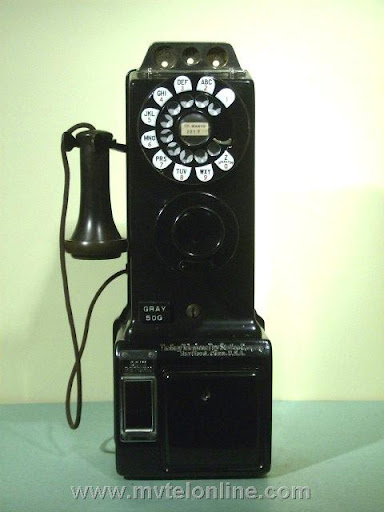 Gray #50G, this seems to be the model everyone looks for, the 50G is a 5 cent automatic payphone or paystation. This one is of a late production run, it has a steel upper and backboard vs. the earlier cast iron ones. While this antique payphone wasn't made for the "Bell System" it does have components made by Western Electric including the dial & shroud, the transmitter and the receiver. View my article Gray 50G