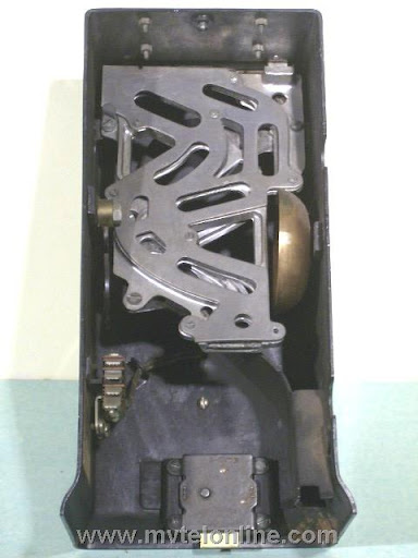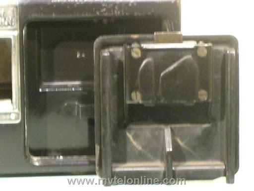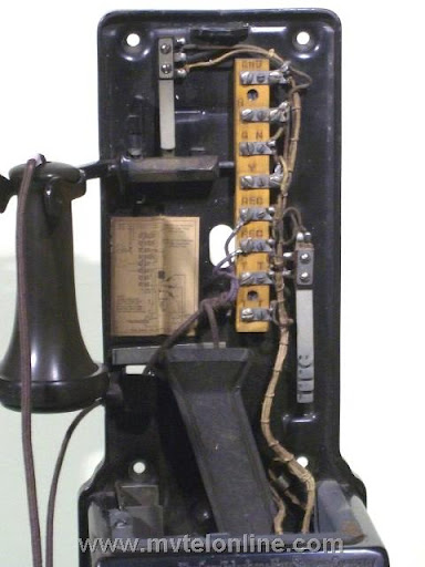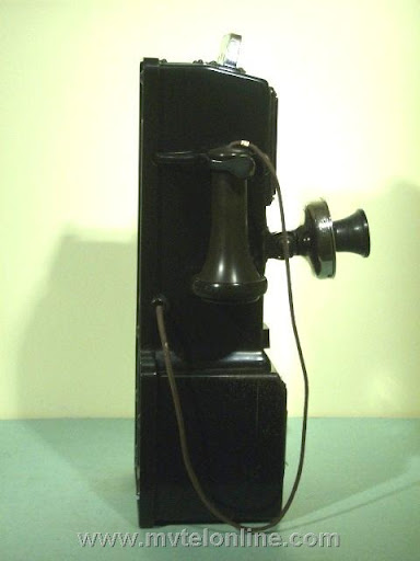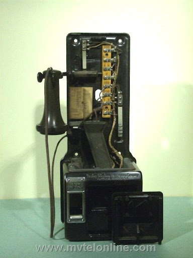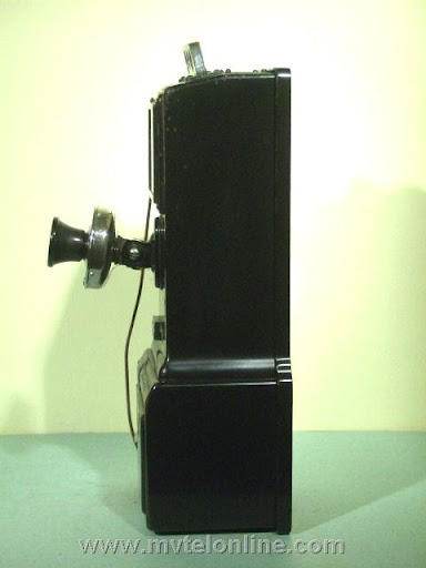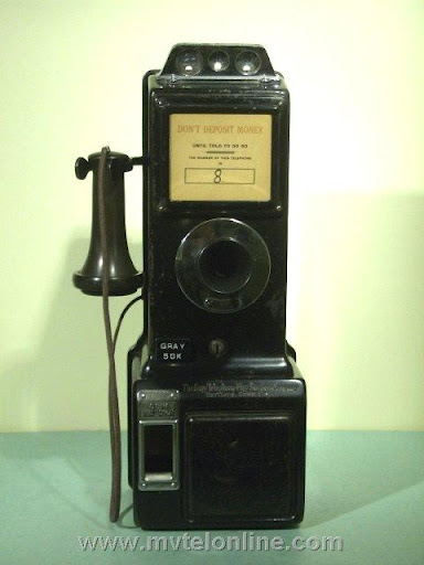 Gray #50K manual payphone or paystation. This one is of a late production run, it has a steel upper and backboard vs. the earlier cast iron ones. While this antique payphone wasn't made for the "Bell System" it does have components made by Western Electric including the transmitter and the receiver. All functions were handled by the operator. View my article Gray 50K