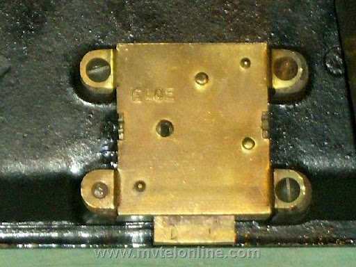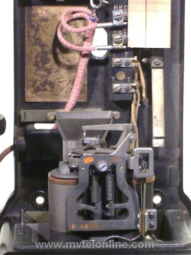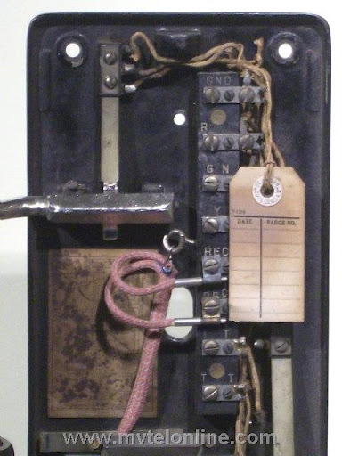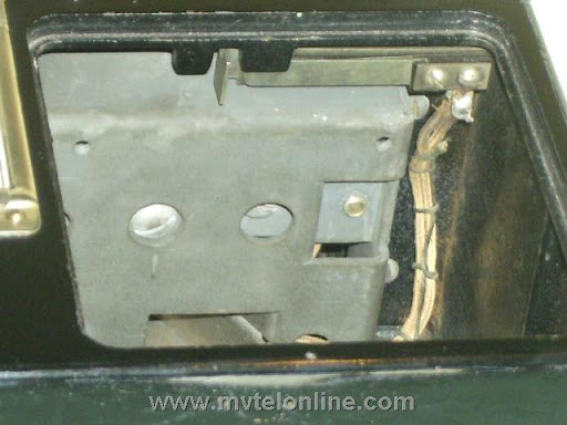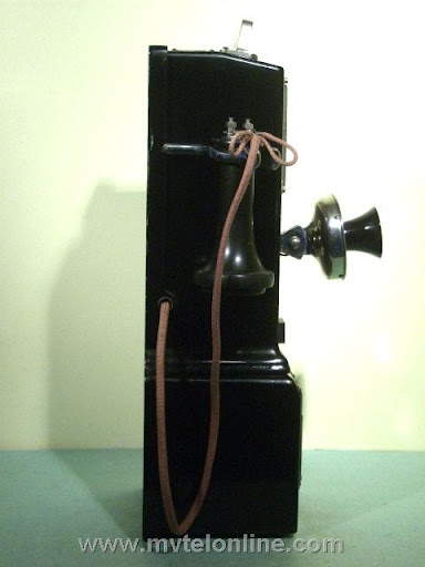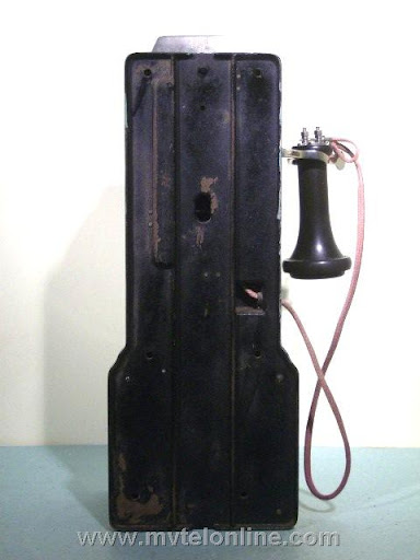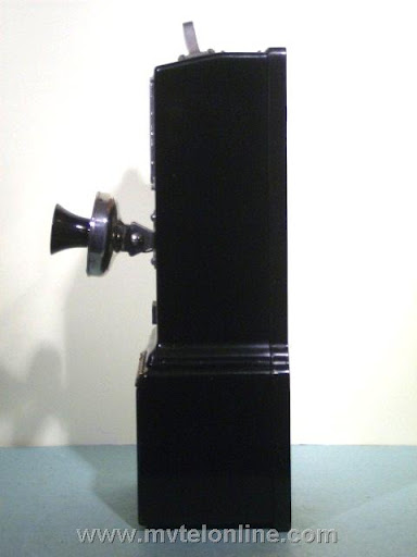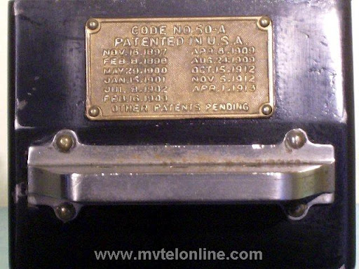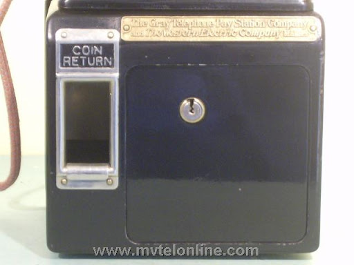 Gray #50A, manual prepay payphone or paystation. This antique telephone was made for the Bell System, it has a Western Electric coin relay. This is the first model of the standard 3 slot payphone ca 1911. The upper, backboard and lower are cast iron. The name tag above the vault is bronze. The vault door is flat steel. There is no dial cup cut into the upper housing, this was made before the dial was available. Production was short lived because the cast vault was extremely vulnerable. The lower lock is an 11A and the upper housing lock is an E10E. View my article Gray/WE 50A