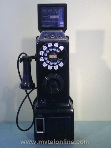 Western electric 161C, 5 cent automatic prepay. One of the first payphones or paystations manufactured by Western Electric. Unlike the 161A this model is unique with many changes from those manufactured by Gray. The hook is steel and the contact setup is totally different, this is the way the contact pileup remained until just before the end of Western Electric 3 slot production. Equipped with WE 2 coil relay and 706 receiver and the 635 "bulldog" transmitter.