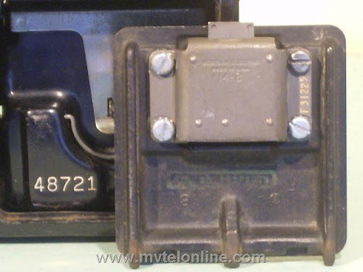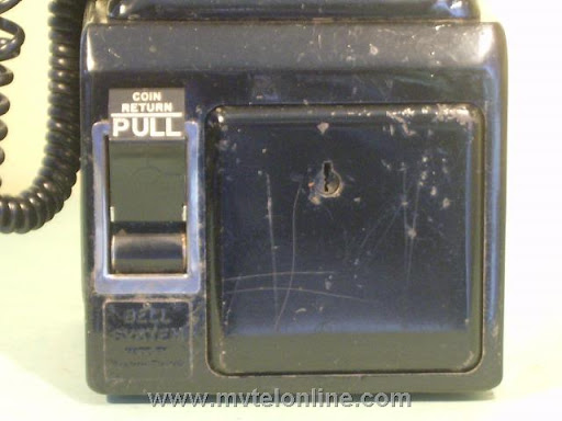 Western Electric 197GS, 10 cent automatic prepay payphone or paystation. This antique telephone has a coin gauge found on a few that came from Chicago, use of slugs was a problem there. The coin gauge is larger than a normal one, it has magnets in it to attract slugs and keep them from dripping into the phone. A special coin chute is used as well. The 197 is the first of Western Electric's models to be fitted with a coin return bucket and a coin return button.