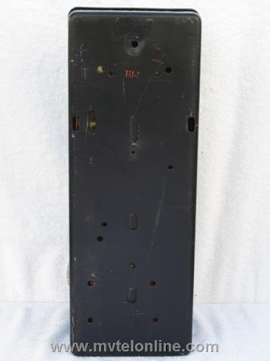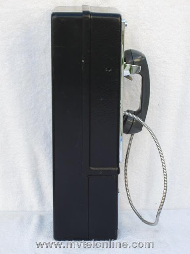New York Telephone Co. 1A1-3 Western Electric 1971 pre-pay payphone with 1C chute. Note the early Bell logo on the front, the tear drop shaped early coin return lever and the early plastic switch hook tongue. Also note the original gray handset without a rubber grommet.