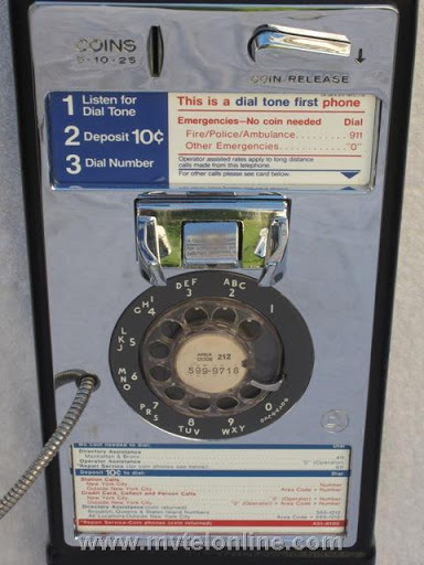 New York Telephone Co. 1971 post-pay Western Electric 1C payphone. Note the original gray handset with blue grommet. The phone came out of a Manhattan restaurant in the 1970s.