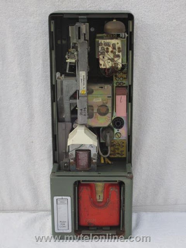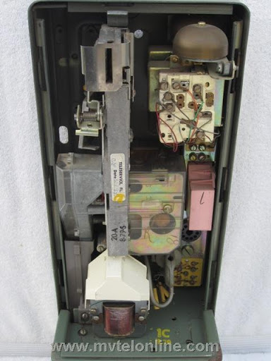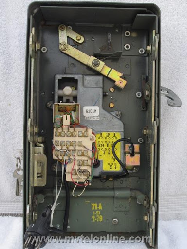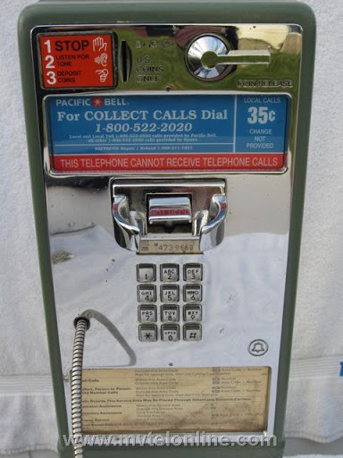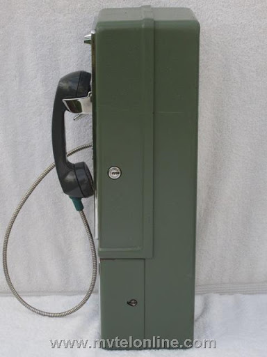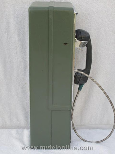 Green Western Electric 1C touch tone payphone from Stockton California. The upper housing lock is a 29A-31, the lower is a 30C, note the early gray colored handset.