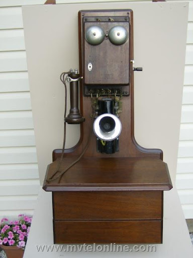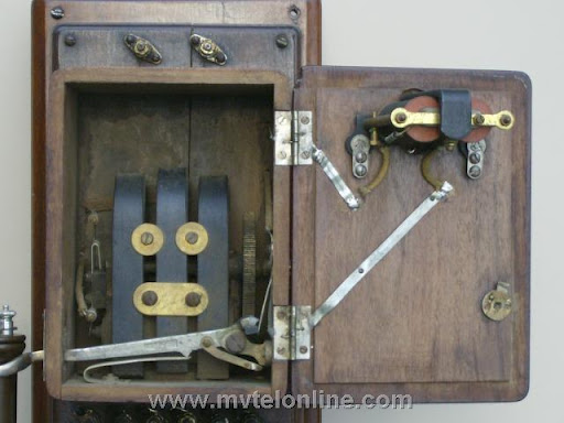 Western Electric type 21, "3 jug" or "Long Distance Telephone" Most phones in the 1890s had 1 or maybe 2 battery jars. This antique telephone holds 3 which increases the voltage and enables conversations over a much greater distance. It is equiped with a Western Electric "long pole" receiver and a 7 digit beveled edge Western Electric transmitter. The wood is walnut.